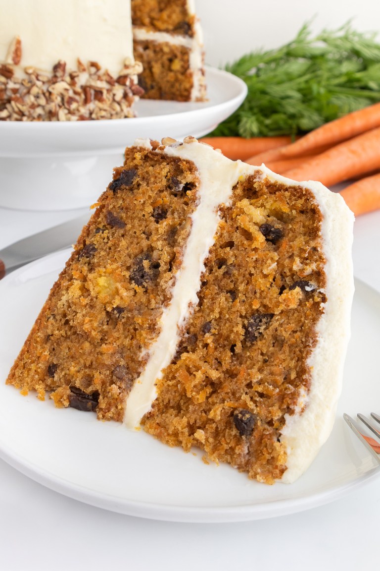 One of my favorite things about carrot cake is how customizable it is. In this recipe, I use all of my favorite add-ins: raisins, toasted pecans, and diced pineapple. However, you can add in just about anything to make the perfect carrot cake for your family. You can substitute the pecans for walnuts, or even add in some shredded coconut or candied ginger for added spice. Be as creative as you want!