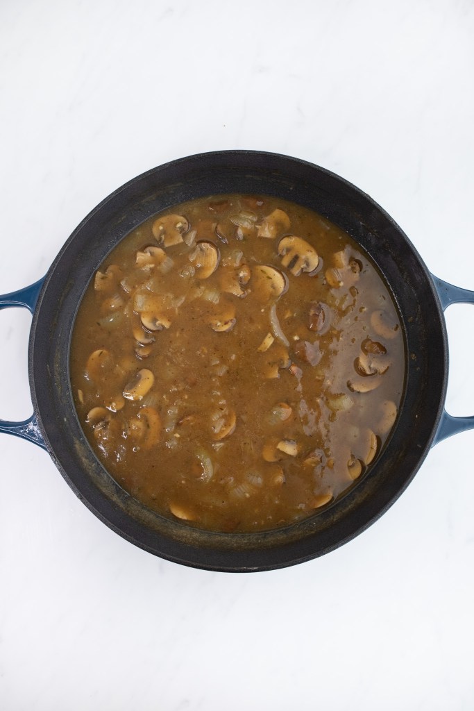 Turn the heat back up to medium-high and continue to simmer the cooking liquid for about 10 minutes, until it has thickened and reduced to about 2 to 3 cups.