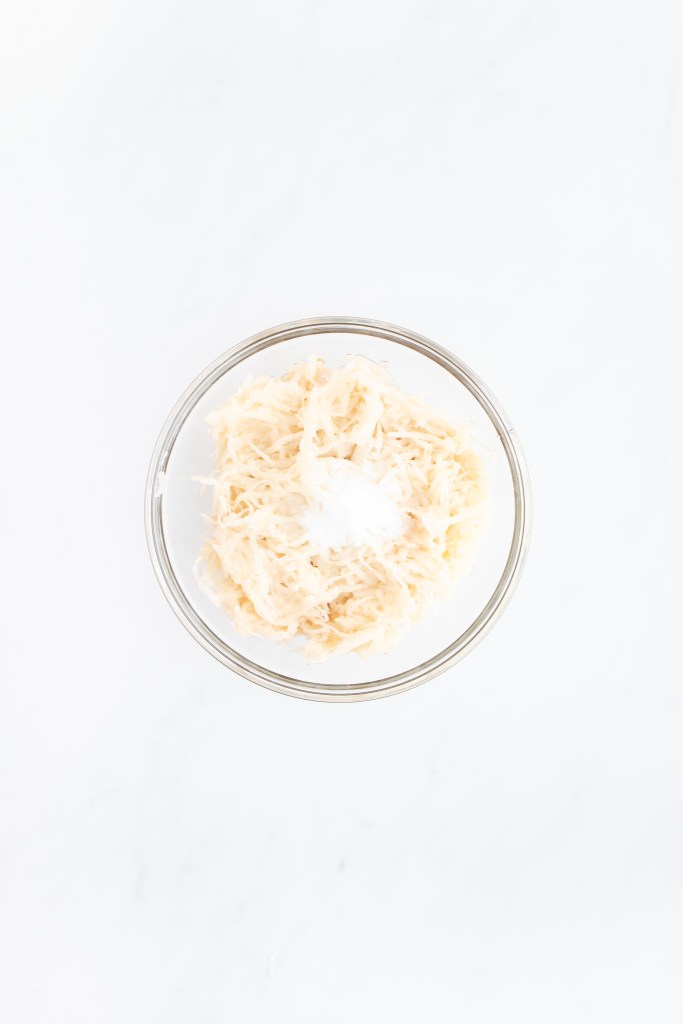 - Grate carrots and potatoes. In a small bowl, sprinkle baking soda over grated potatoes and stir to combine.1 cup potatoes (packed), finely grated1 tsp baking soda1 cup carrots (packed), finely grated
