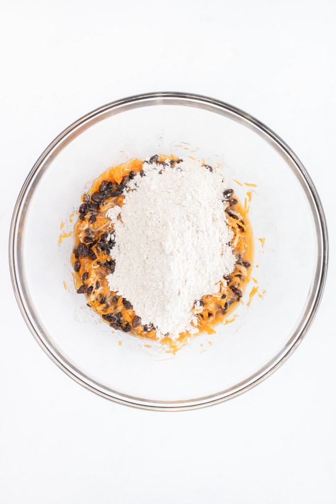 - Mix the sugar in with the grated carrots and the grated potatoes/baking soda mixture before adding in the rest of the ingredients (otherwise, the mixture seems to come out a bit dry).