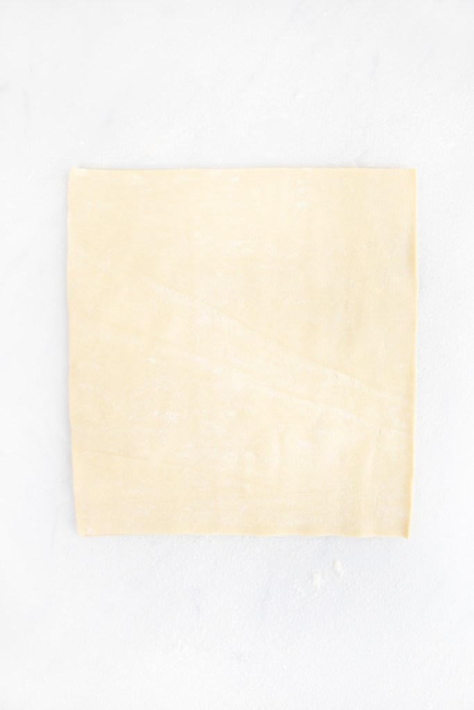- Roll out the puff pastry (whether stacked or not) to a square about 15" by 15".