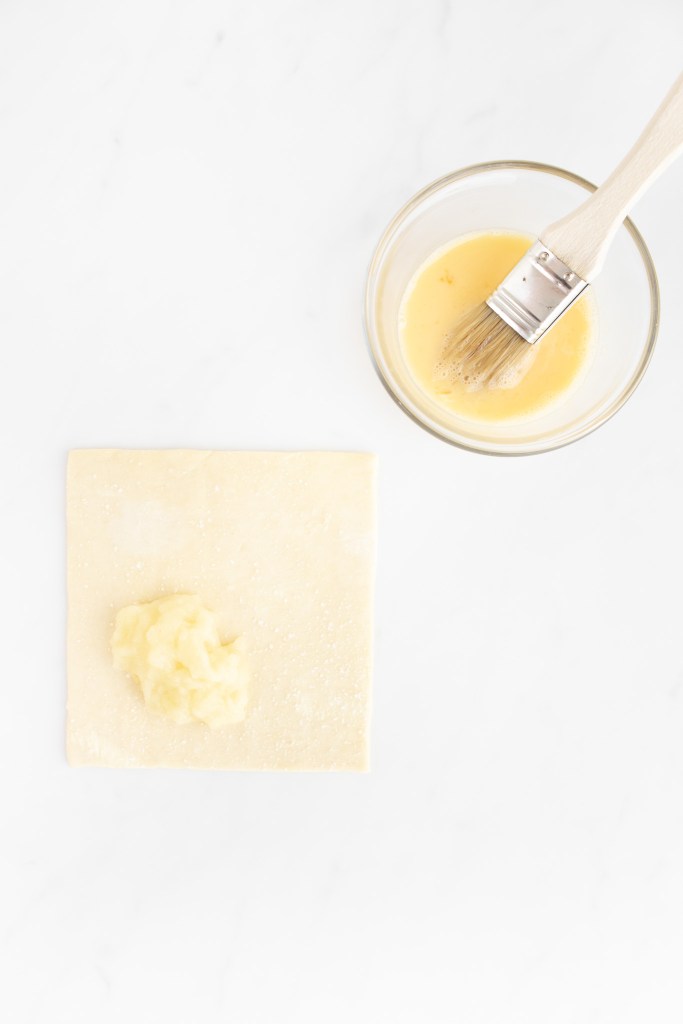 As I mentioned earlier, if a “puffier” turnover is desired, stack multiple sheets of store-bought puff pastry one on top of the other, brushing the egg wash in between each layer to adhere the layers together.