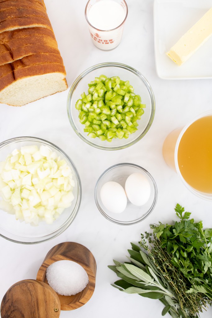 Additionally, if you aren’t making it ahead and are roasting a turkey or chicken, you could pour some of the pan drippings into the liquid mixture with the chicken stock. But, whenever I’m making homemade stuffing, I prefer to make it ahead to help reduce the amount of work required day-of.