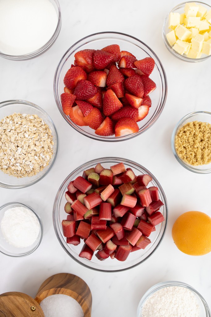 Additionally, I allow my strawberry rhubarb crisp to cool for at least one hour — ideally, even longer, when it is closer to room temperature. This allows the cornstarch enough time to set the filling. But if you absolutely can’t wait, cutting into it early isn’t detrimental, and the crisp will still taste great!
