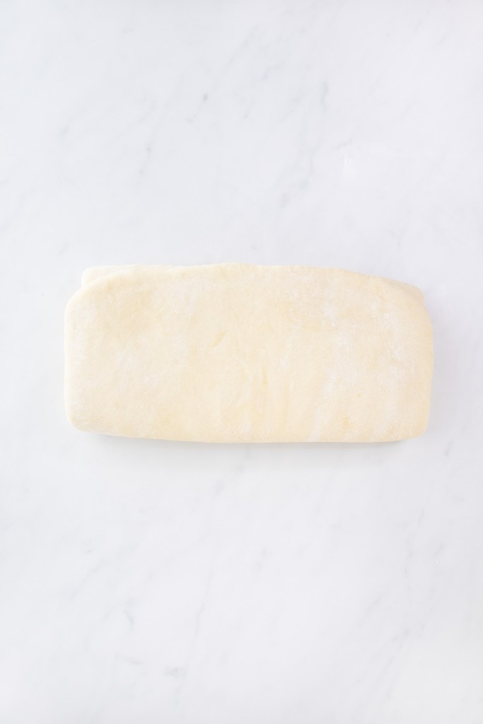 Fold the dough in thirds like a business letter, starting with the top third, followed by the bottom third. This is called a “turn”.