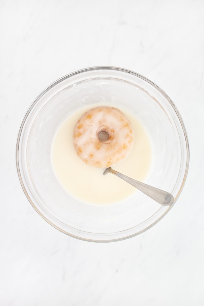 - Dip each donut into the glaze, turning it over and swirling it around to coat all sides. Allow the excess glaze to drip back into the bowl for a few seconds, then transfer the donut to the prepared sheet pan with the wire rack.