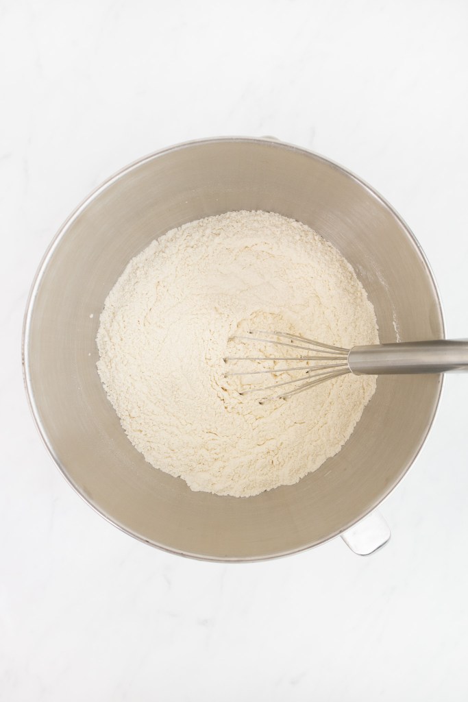 - In the bowl of a stand mixer fitted with the dough hook attachment, combine flour, salt, and nutmeg. Whisk together to combine.4 ½ cups all-purpose flour1 ½ tsp kosher salt¼ tsp ground nutmeg