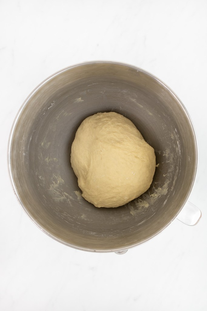 Then, mix on medium-low speed for about 5 to 8 minutes, until the dough becomes smooth, elastic, and pulls away from the sides of the bowl. Note: If the dough continues to stick to the sides of the bowl of your mixer, add in an additional 1 to 2 Tablespoons of flour.